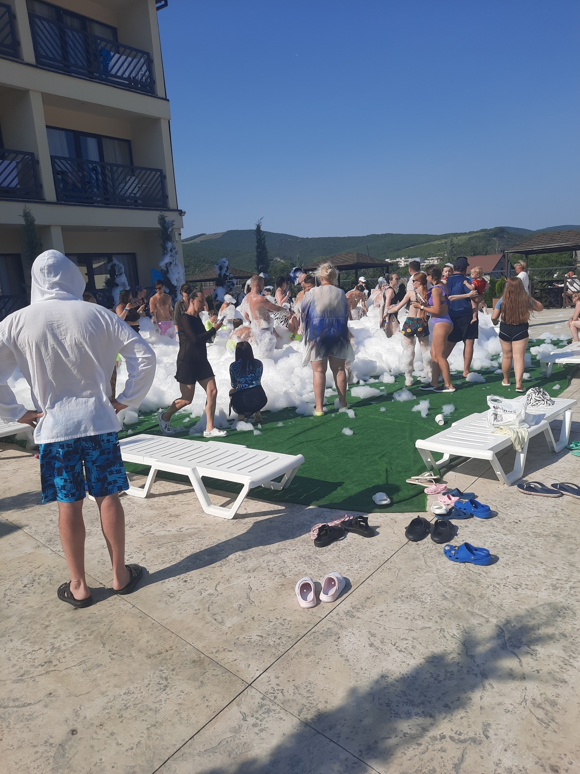 Отдыхали с 14.09-22.09, нас было 3 человека. Заселили в 4 корпус. Из минусов: не удобное кресло, на нем очень жестко спать, даже с топером и мы еще стелили одеяло. Все равно, больно спине и плюс оно очень узкое. Про кресло как доп. место много плохих отзывов. Огромная просьба сотрудникам отеля уделить этому внимание. Установите, пожалуйста, на окна москитные сетки… комарики…мелочь, а было бы очень приятно. В остальном, одни только плюсы. Побывали в сказке. Природа, воздух чистый. До моря 5-7 мин. по красивой дороге, ездишь и любуешься горами и морем. Море чистое, мы приезжали рано, лежаки всегда были. Лимонад, пиво в неограниченном кол-ве. Снеки разные, мы брали в основном фри и наггетсы с соусами. Бассейны чистые на территории отеля, хлоркой не пахнут. Два бара, везде приветливые сотрудники. Я не пью алкоголь, но мне делали разные безалкогольные коктейли, за это огромное спасибо барменам Данилу и Николаю. Номера убирали каждый день, полотенца если кидаешь на пол мокрое, когда приходят убираться обязательно заменят. Нам каждый день меняли. Еда в ресторане выше всяких похвал, разнообразная, голодным точно не останешься. И самое главное, нам ни разу не было плохо. Все свежее. Особо хотела выделить очень вкусную молочную продукцию. Брали каждый вечер кефир, кто любит обязательно попробуйте 😊 Рекомендую!